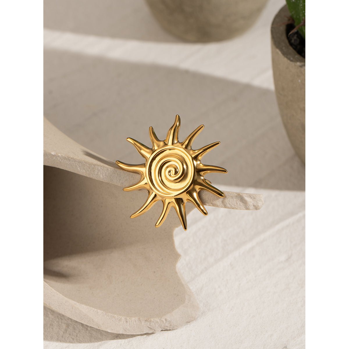 For the gold-plated pieces, we use PVD plating, which ensures the color remains beautiful for years (at least a few). It's highly resistant to fading and also scratch-resistant.