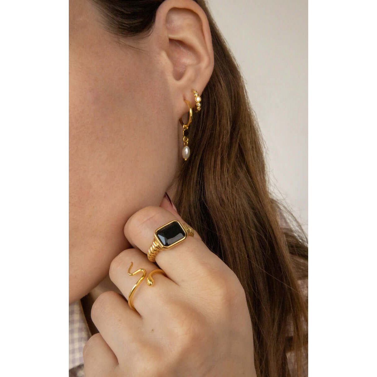 Gleamly jewelry is made from sustainable, 100% recyclable stainless steel and finished with a high-quality gold plating.